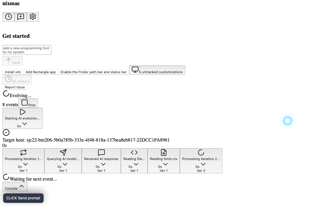 Selected at 0.7s, label "after-click-Send prompt"; stable visual state.