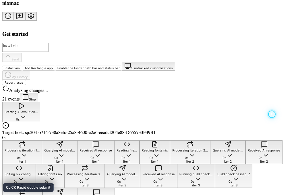 Selected at 2.1s, label "after-click-Rapid double submit"; stable visual state.